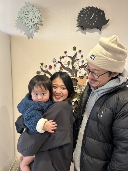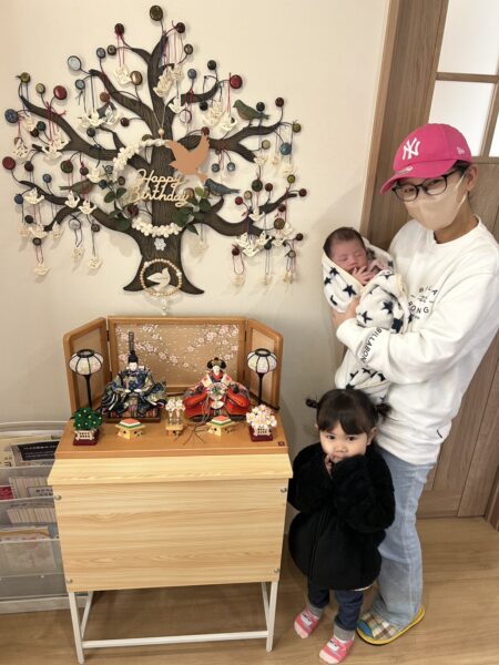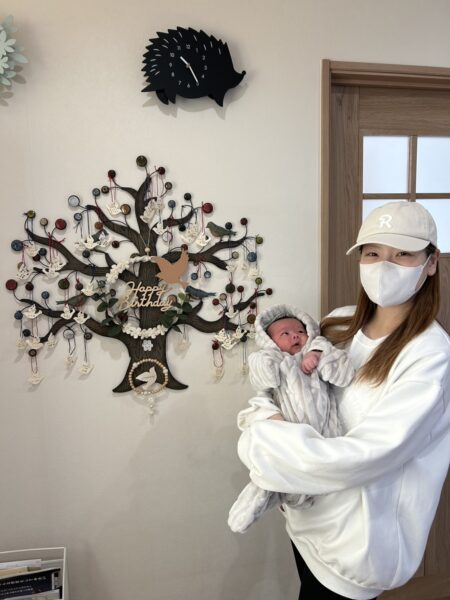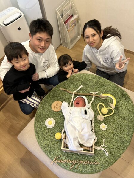 退院された赤ちゃんです。ご家族一緒に記念撮影。